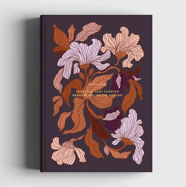 Flower Notebook with floral motifs by Tytti Laitakari, showcasing the quote "Trust the next chapter because you're the author."